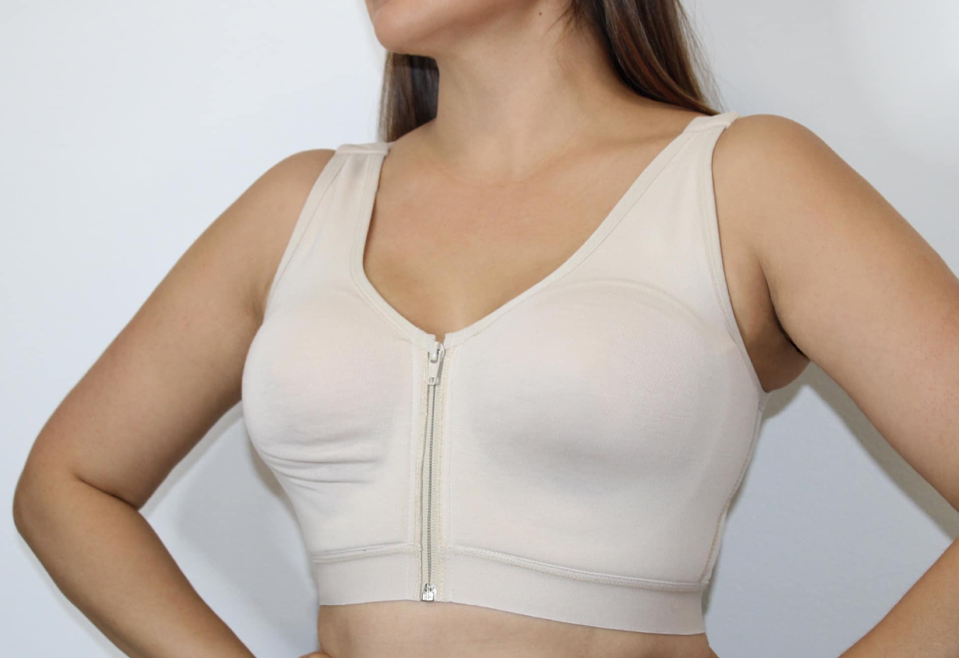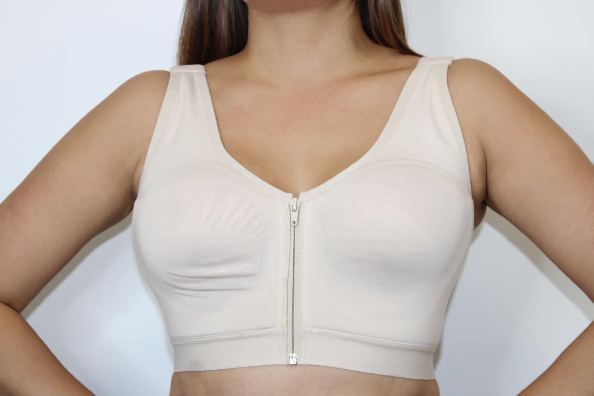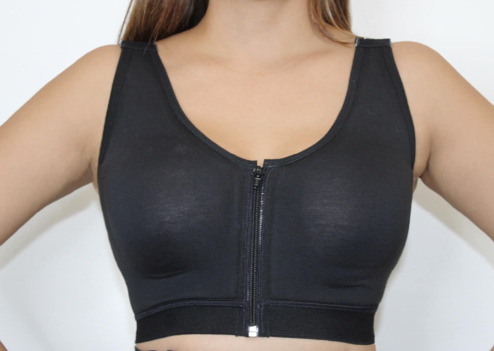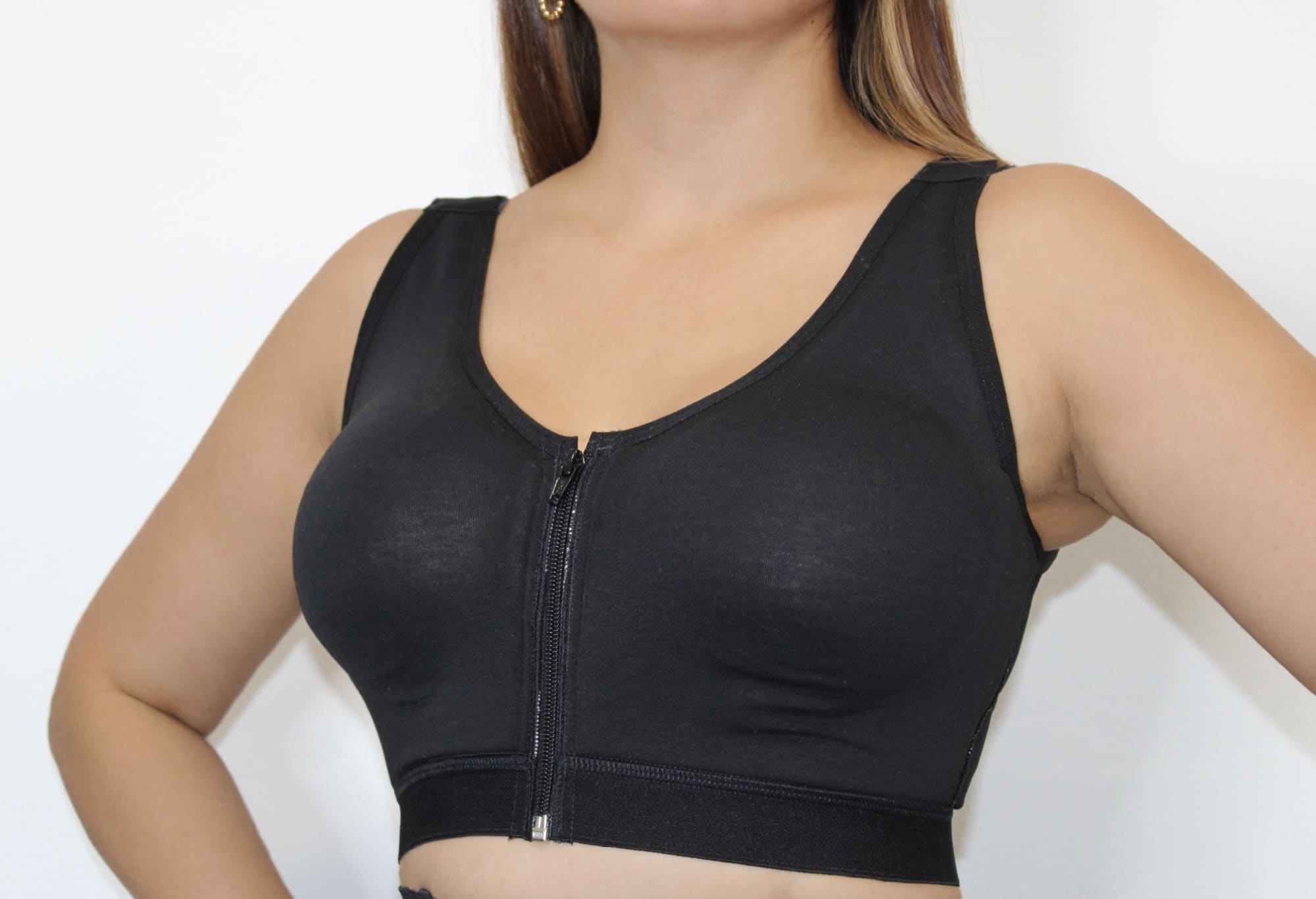 - Diseño con cierre frontal cremallera, tiras graduables y corrector de postura.